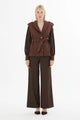Elevate your autumn and winter wardrobe with this refined Gizia jacket and trouser set. The tailored jacket features a classic men's collar, long padded sleeves, and a cinched waist tie for a polished silhouette. Pair it with the matching wide-leg trousers for a coordinated look. Crafted from a premium polyester-elastane blend, the set offers both structure and subtle stretch for all-day comfort. Fully lined for added sophistication, this versatile ensemble transitions seamlessly from professional settings to elevated casual occasions. Sold as a complete set.